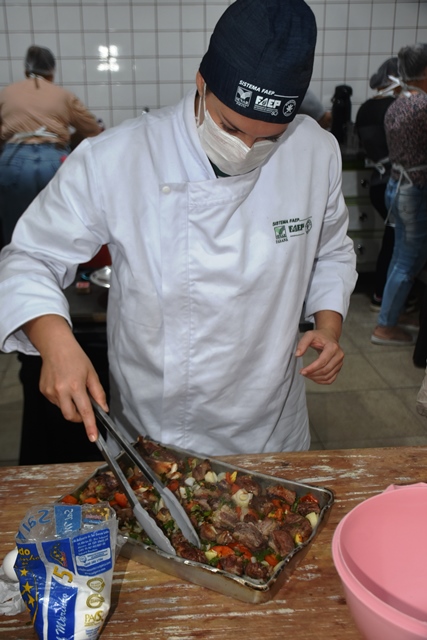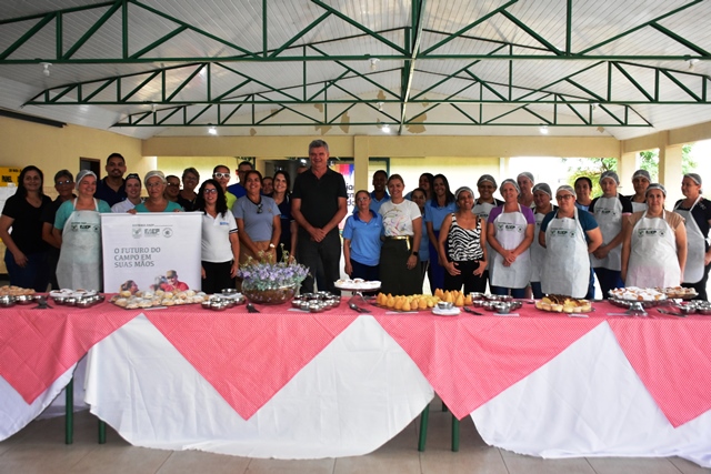 O curso de “Alimentos Derivados da Mandioca” foi realizado nas dependências da Escola Municipal Maria de Lourdes Oliveira Taques e contou com a participação de 26 merendeiras da rede municipal de ensino, divididas em duas turmas.