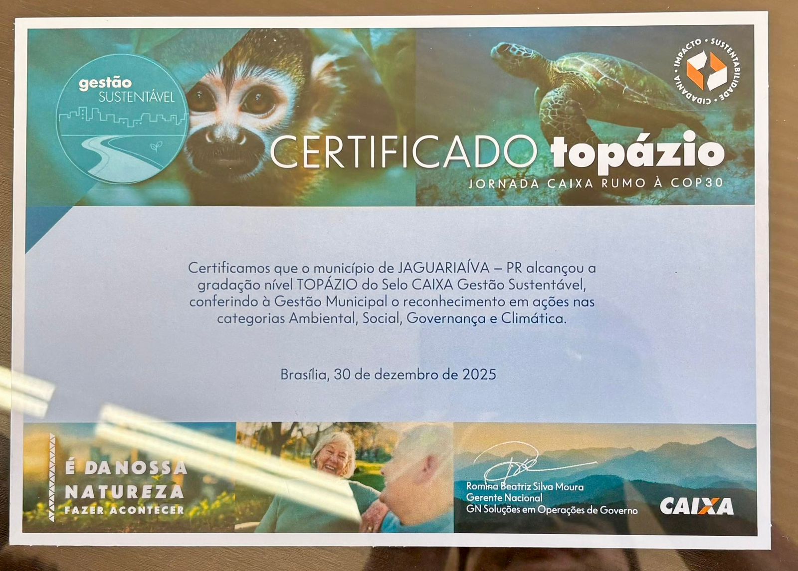 A Prefeitura de Jaguariaíva teve seu compromisso com a responsabilidade socioambiental reconhecido nesta quarta-feira (25) ao conquistar a certificação nível Topázio da Caixa Econômica Federal. A entrega ocorreu em cerimônia realizada na Casa da Cultura.