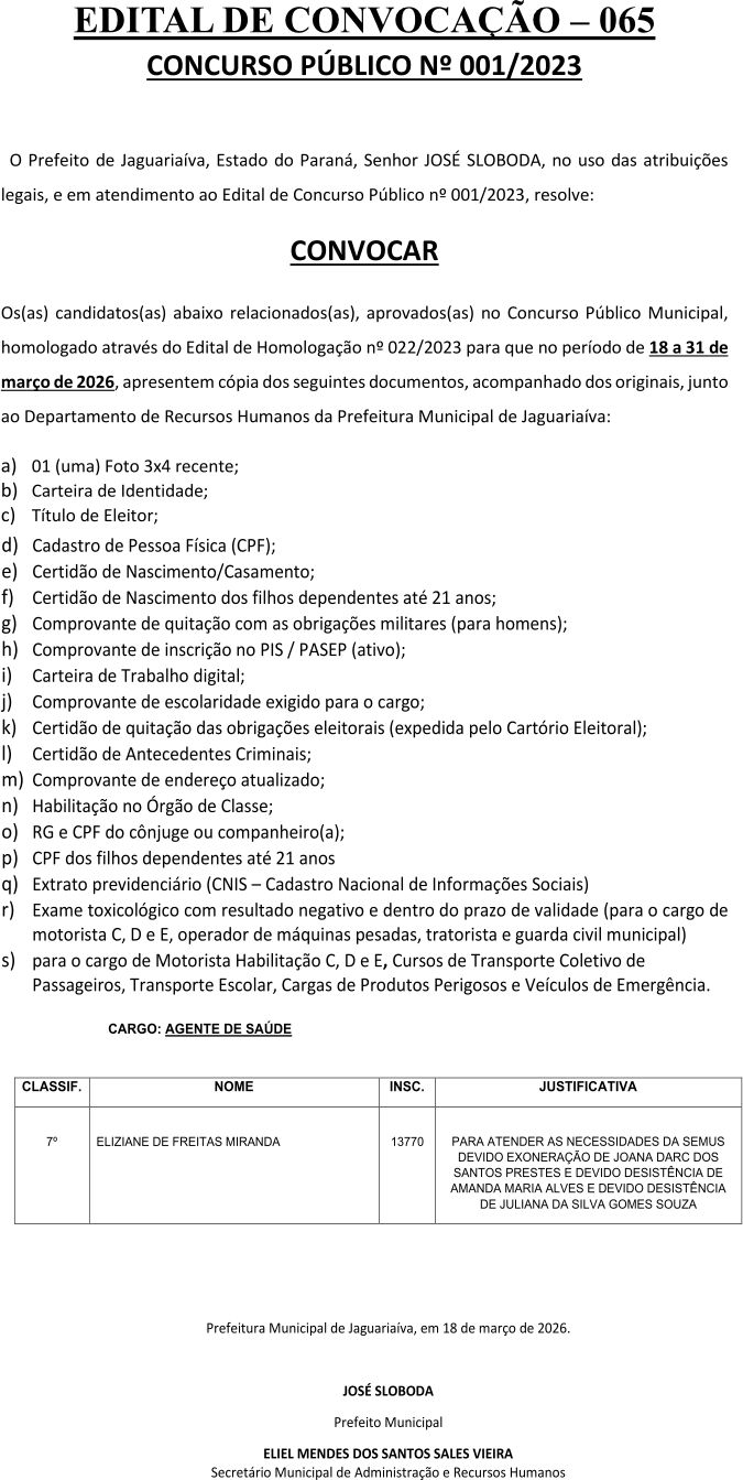 Edital de Convocação 065 - Concurso Público 001/2023 Edital de Convocação 065 - Concurso Público 001/2023 Próximo