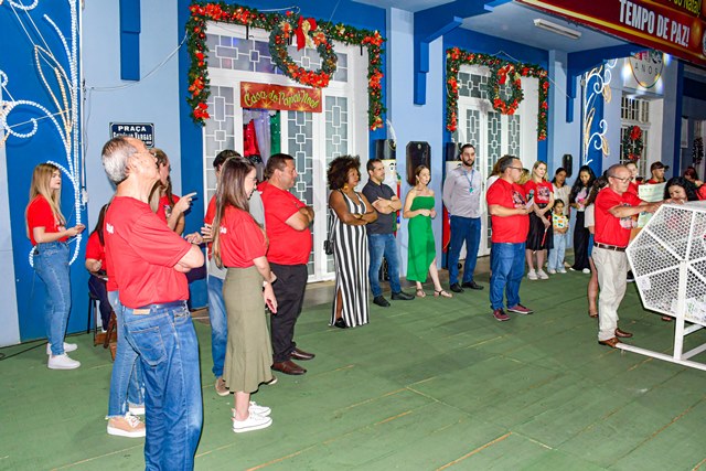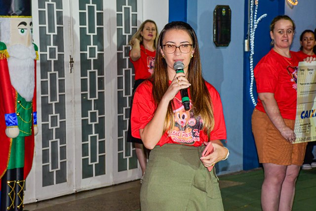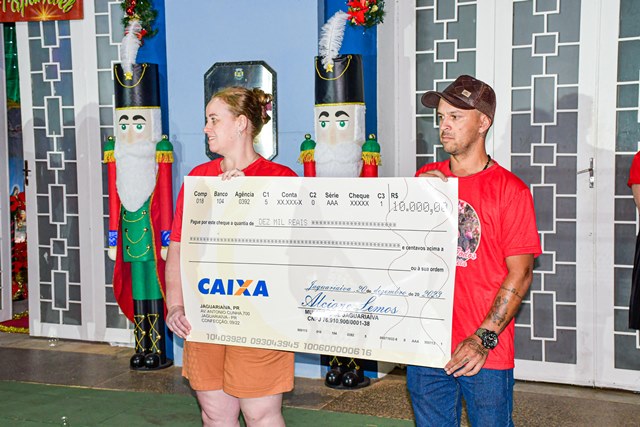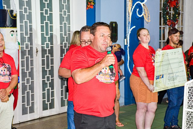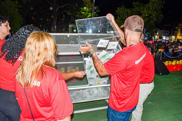 O diretor de tributação, Disnei Alves de Oliveira e a secretária da SEFIP, Bruna Silva Miranda Zivigicóski, falaram sobre as regras da campanha. A secretária Bruna enfatizou que o pagamento em dia do IPTU gera recursos para aplicação em obras e serviços em benefício de todos. Também esteve no sorteio o vice-prefeito Adilson Passos Félix e a prefeita Alcione Lemos, que deixaram saudações a todos. A prefeita Alcione destacou que o Natal para todos é realizado há 15 anos, sempre oferecendo atrações culturais e momentos de alegria, cultura e confraternização. Sobre o IPTU, registrou a inovação, que foi a distribuição de 10 prêmios em dinheiro.