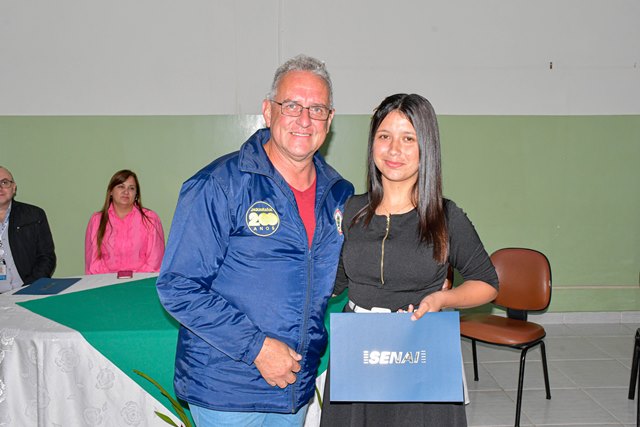 Também participaram da certificação a diretora do Departamento de Ensino Profissionalizante, Tânia Marodim Assis, o coordenador de Educação do Senai – Unidade de Jaguariaíva, Ernesto Sountachi Junior, a orientadora pedagógica do Senai Jaguariaíva, Geisa Santos, professores do curso, entre eles a professora Claudia Veiga, homenageada da turma, servidores da SARH e familiares dos formandos.