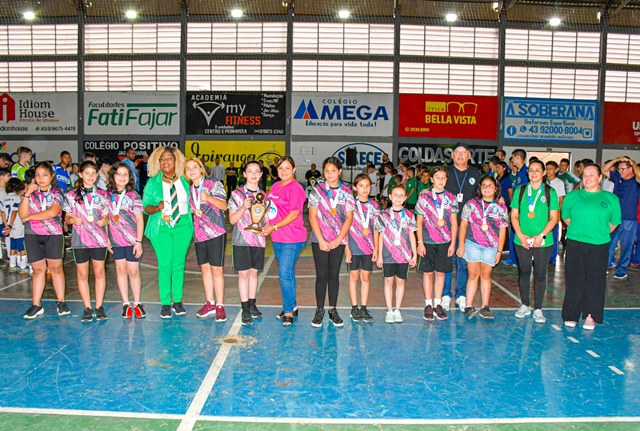 A competição, promovida pela Administração Municipal, através da SMECEL, iniciou dia 16, reunindo mais de 360 alunos de 16 escolas, incluindo as municipais, estaduais e particulares. Foram 33 equipes integradas e 67 jogos realizados. As categorias foram a Mirim (nascidos em 2009/2011), Pré-Mirim (nascidos em 2012), Fraldinha (nascidos em 2013/2014) e Feminino (nascidas em 2012/2014). Confira os resultados: