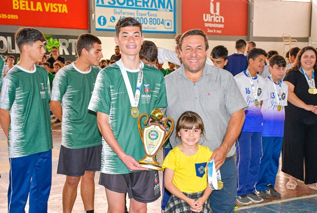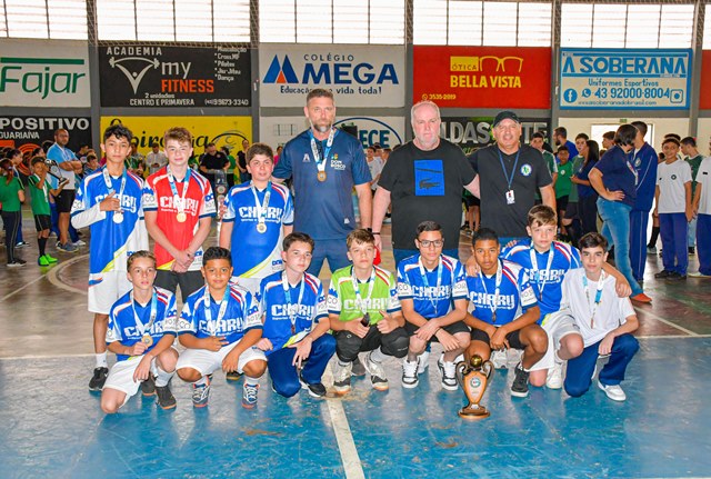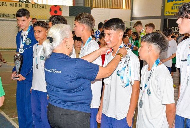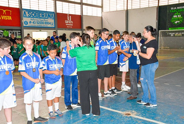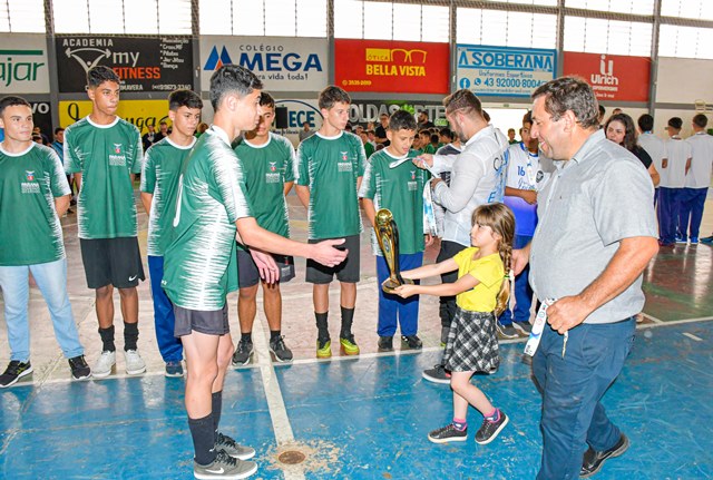 Após acirradas disputas entre as equipes finalistas, foram premiados nesta quinta, 26, no Ginásio Tubunão, os vencedores da 11ª Copa Mirim de Futsal. Secretários municipais, entre eles a de Educação, Cultura, Esporte e Lazer (SMECEL), Erla Mello, vereadores Matheus Passos Félix, Ronei Frizanco (Ratinho) e Verli Ribas, vice-prefeito Adilson Passos Félix, diretores, professores, torcida e familiares dos alunos compareceram.