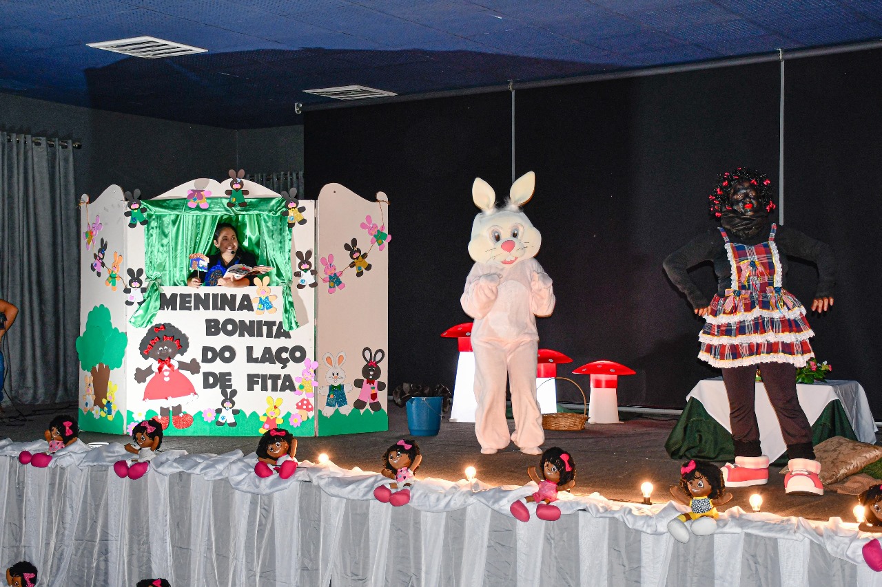 Na apresentação, conduzida pelas técnicas da Equipe de Assessoria Pedagógica da SMECEL, são abordadas questões de diversidade, combate ao racismo e inclusão da temática da história e cultura afro-brasileira na escola. Além de aprendizagem, a Hora do Conto está proporcionando às crianças, inclusive da zona rural, momentos de diversão. A programação inclui quase mil alunos neste ano.