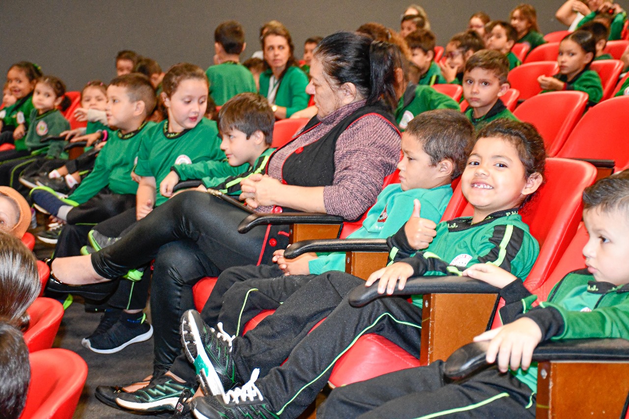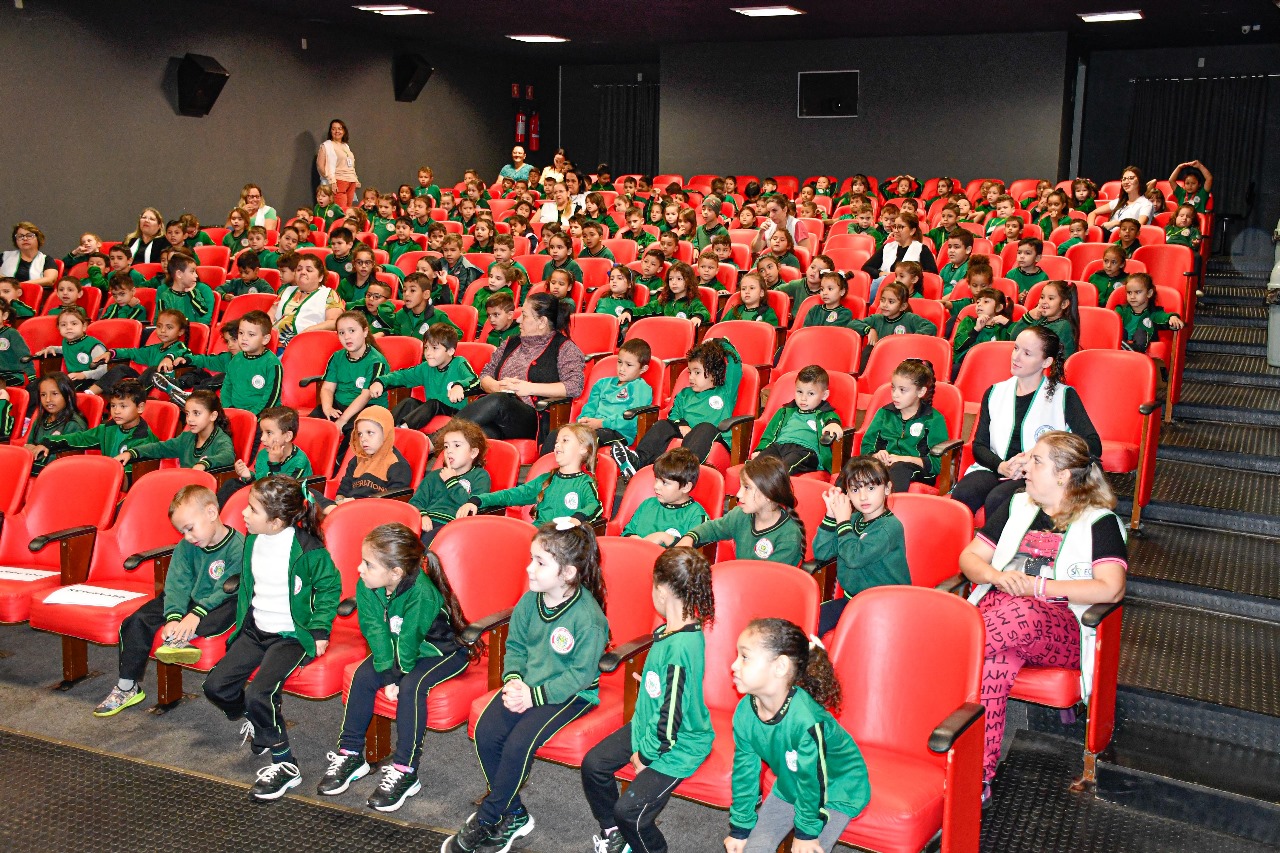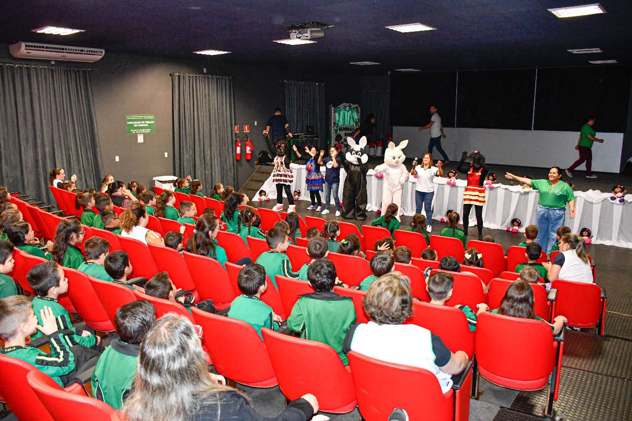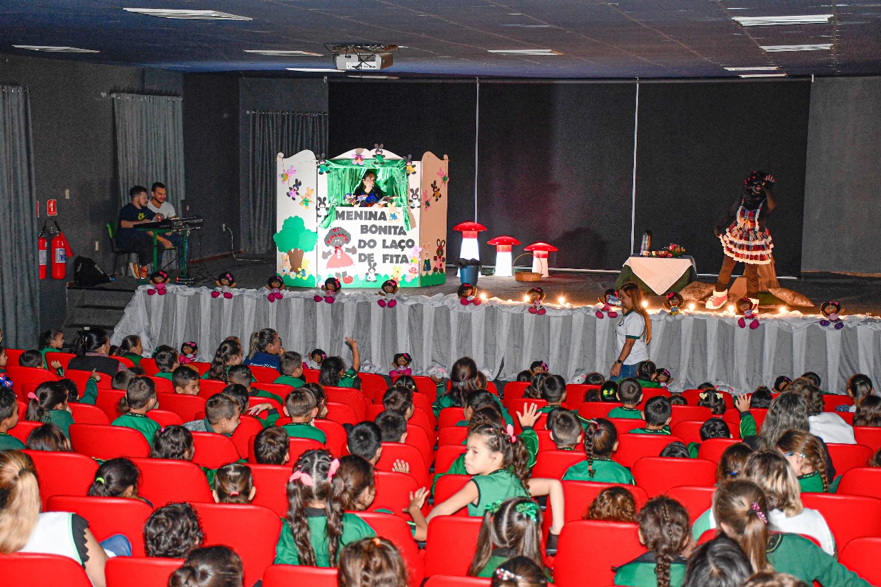 Realizado no Cine Teatro Valéria Luercy, o projeto reúne turmas de Infantil V e 1º Ano do Ensino Fundamental para desfrutarem de uma contação de história, este ano com o enredo de "Menina Bonita do Laço de Fita". Além da história, as crianças assistem a um filme, acompanhado de pipoca e suco.