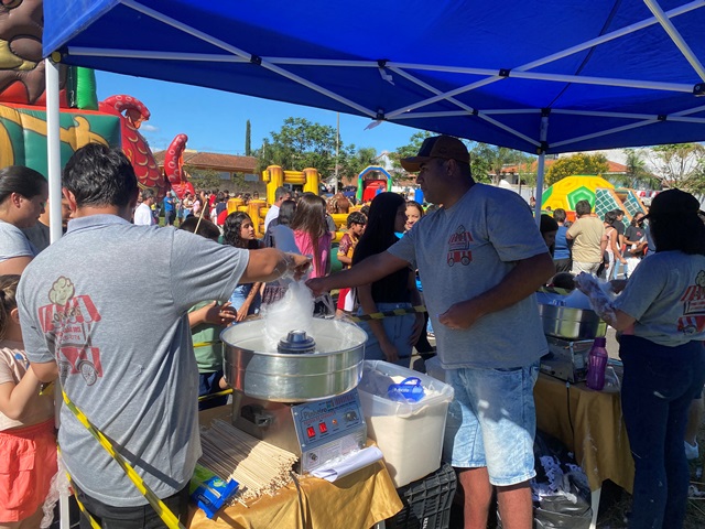Teve distribuição gratuita de sorvete, pipoca e algodão doce — um verdadeiro sucesso entre as crianças, que também se divertiram nos brinquedos infláveis pelo parque. Pela manhã a recreação foi adaptada e específica para as crianças com autismo.