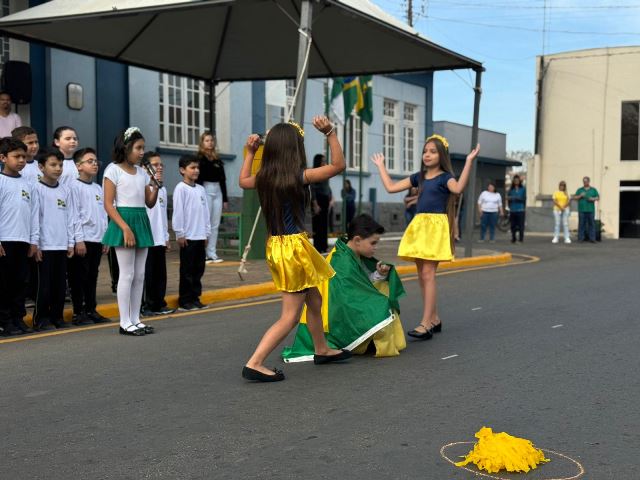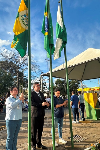 Todos os dias, alunos das escolas municipais — tanto urbanas quanto rurais, dos cemei’s, além de colégios estaduais e particulares, participam do hasteamento dos pavilhões às 8h e do arriamento às 17h. O cerimonial, marcado por cânticos de hinos pátrios e apresentações cívicas, fortalece o sentimento de pertencimento e respeito à nação. Servidores municipais também se revezaram para a guarda do fogo simbólico, reforçando o clima de reverência.